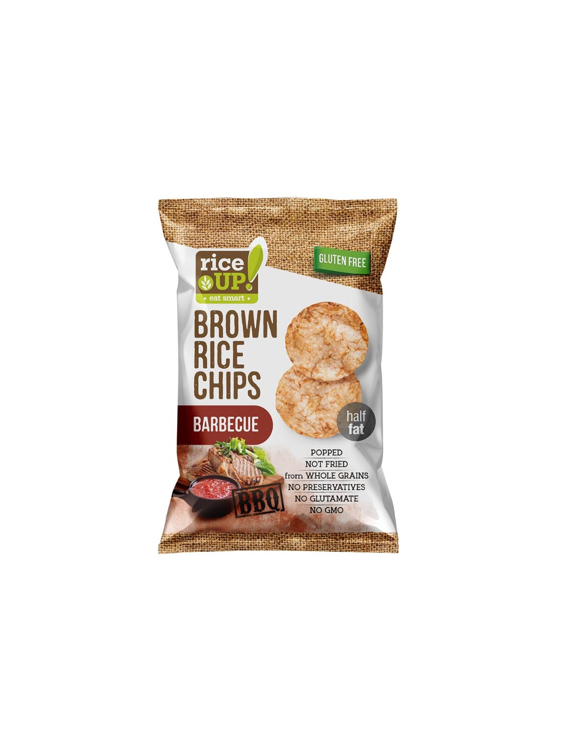 Bezlepkové čipsy z hnedej celozrnnej ryže s príchuťou.