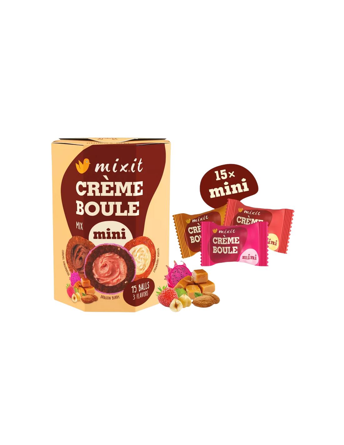 Mini Crème boule Mix je balenie troch obľúbených príchutí datľových guličiek v menšom formáte. Ideálne ako sladká desiata, na ochutnávanie alebo ako milý darček.