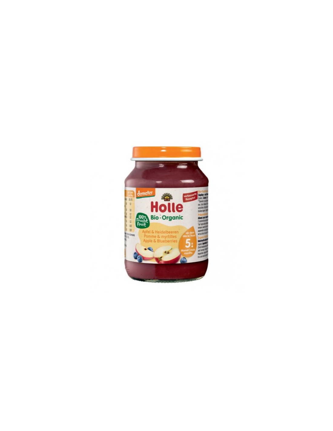 Holle Detská bio výživa (príkrm) Jablko a čučoriedky od 5. mesiaca. Výživa v skle je vhodná keď ste mimo domova alebo máte málo času. Kvalitné ovocie a pre detské jazýčky atraktívna chuť s Holle ovocné príkrmy. Je vyrobená zo starostlivo vybraného ovocia najvyššej kvality, ktoré boli vypestované spôsobom ekologického hospodárstva.
